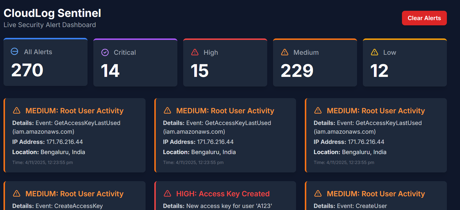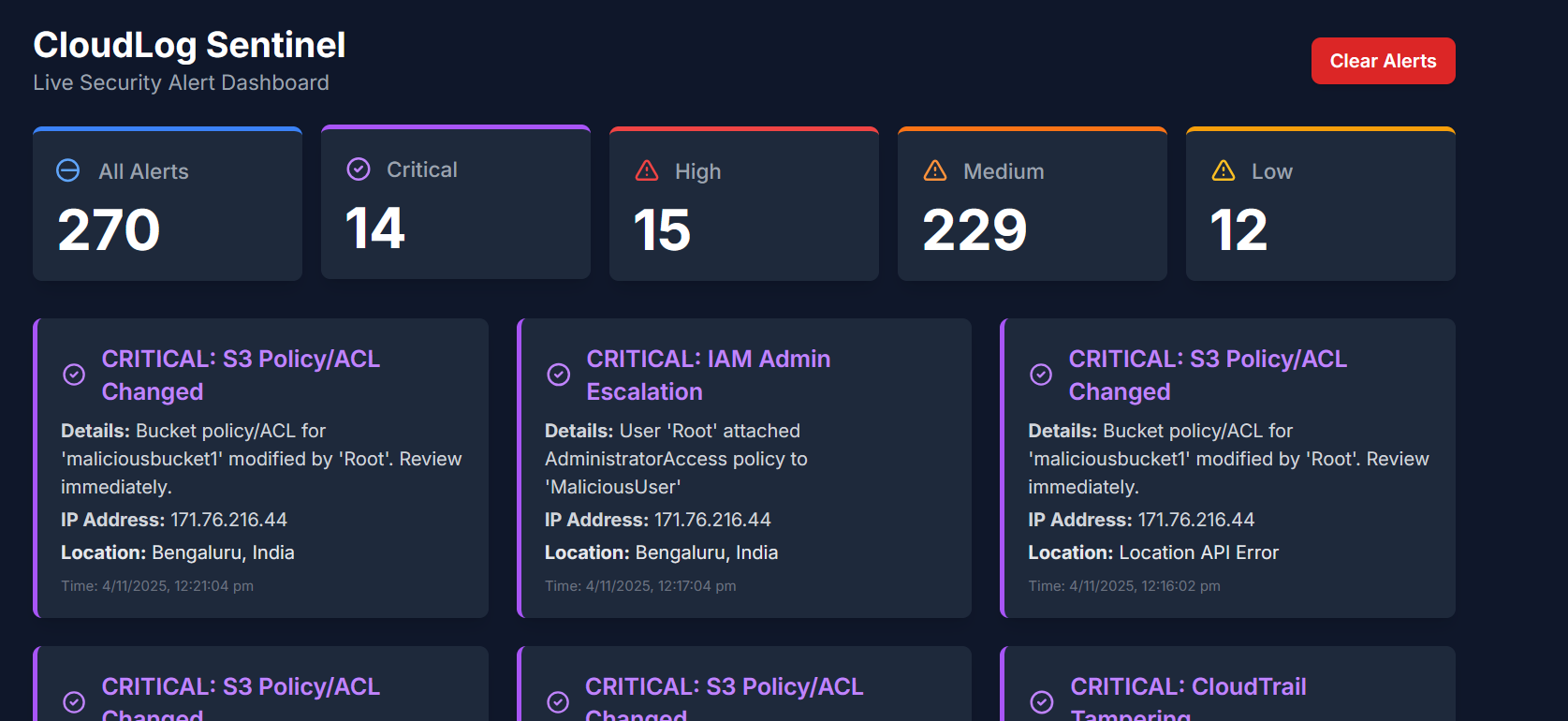 CloudLog Sentinel is a full-stack, cloud-native Security Information and Event Management (SIEM) tool designed to monitor AWS infrastructure in real-time.