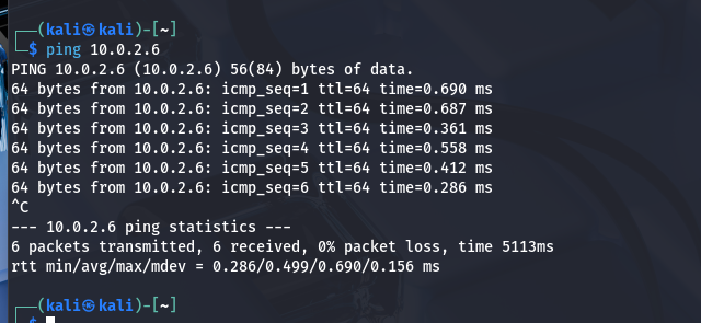 Attacker Machine successfully pinging target
