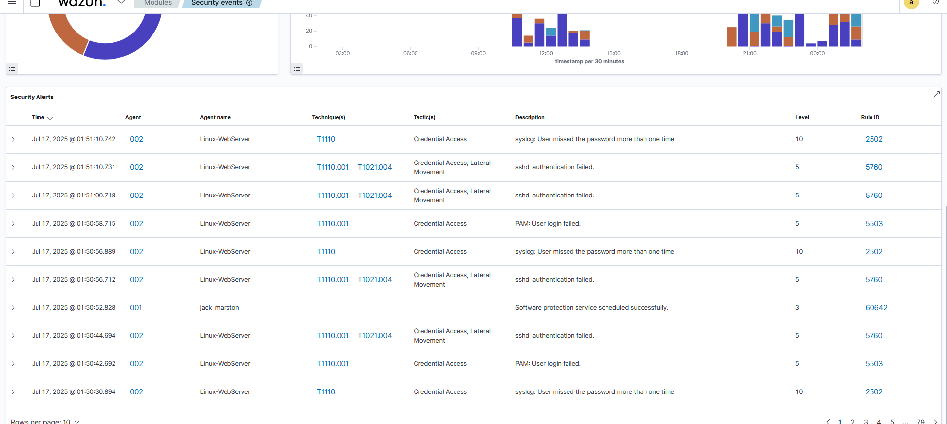 An attacker (Kali Linux) attempts to gain access to the Linux-WebServer by launching an SSH brute-force attack.