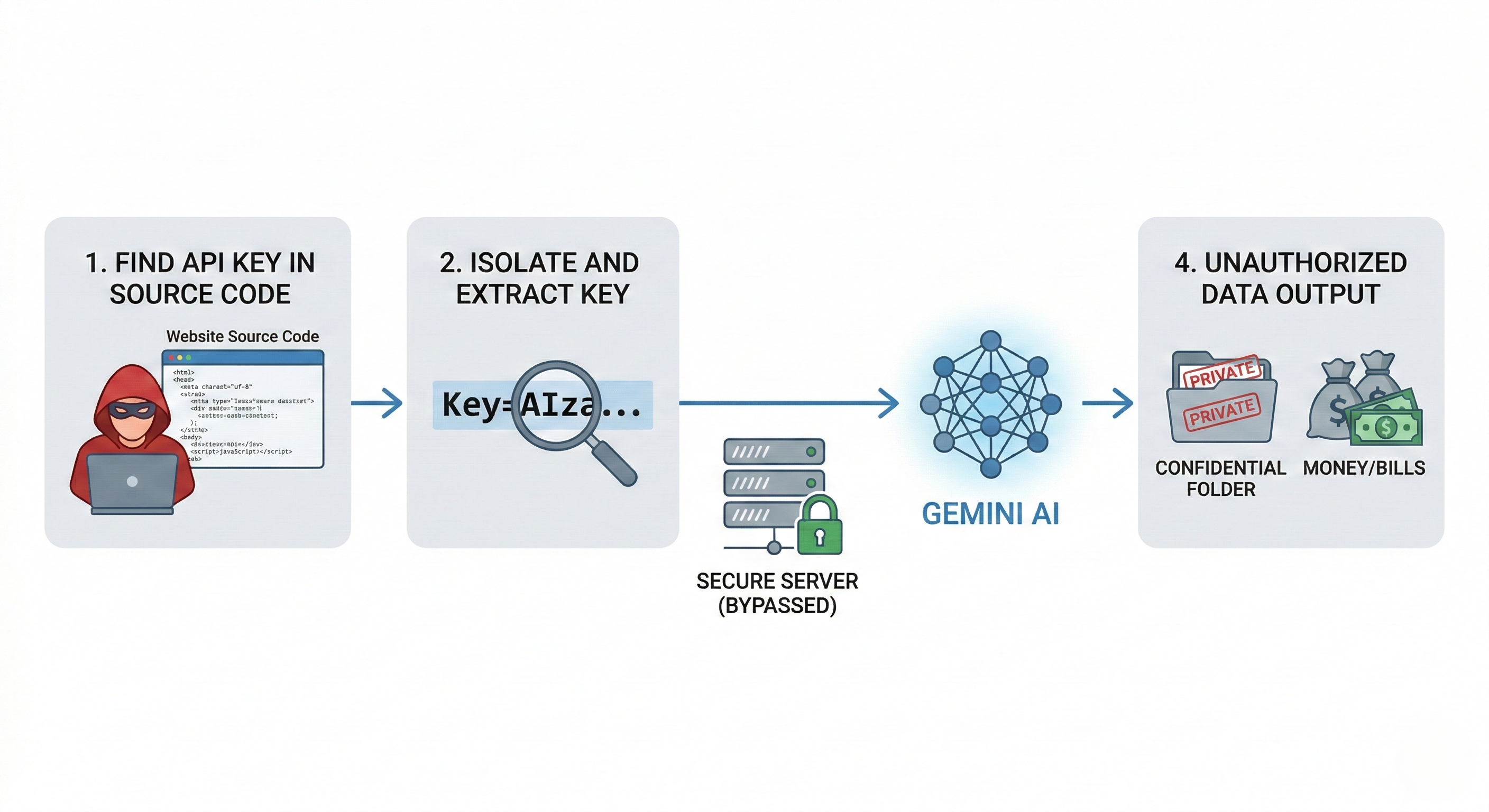 The attack requires zero server access. Hackers can bypass your backend entirely and query the Google Cloud API directly.